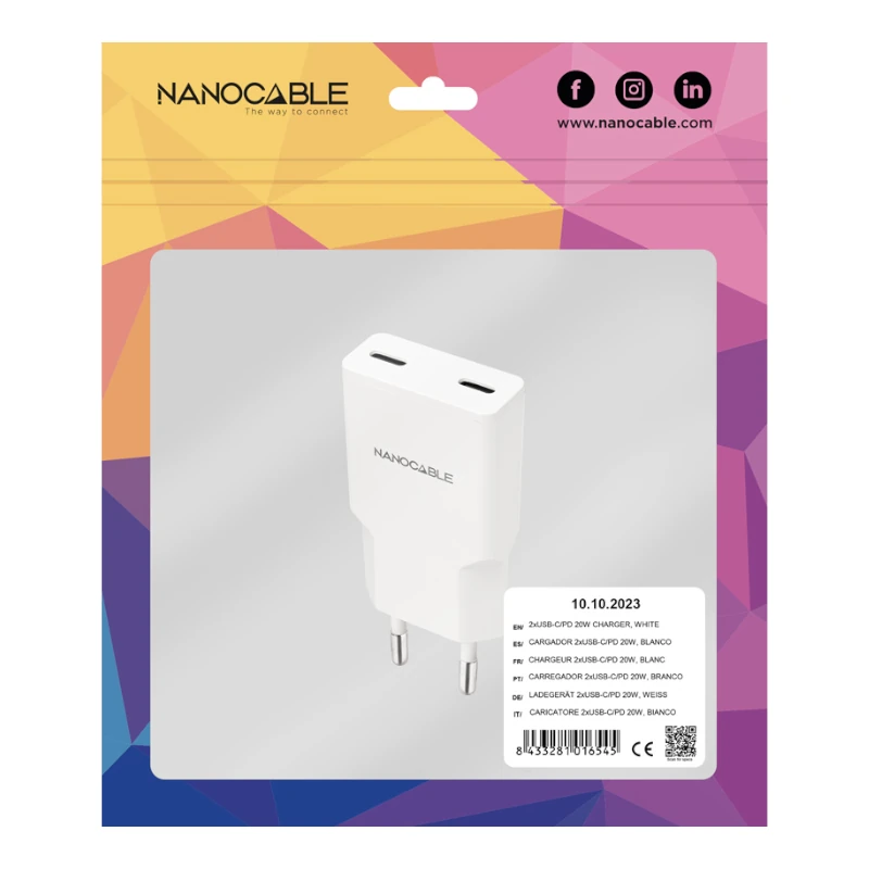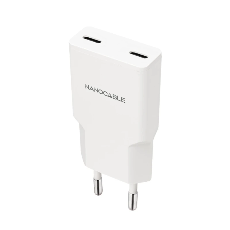 Nanocable Cargador 2xUSB-C-PD 20W Blanco
